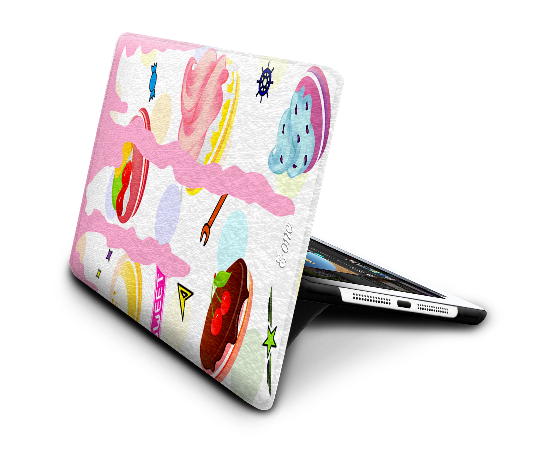 P-MIPAD2-54-WHE NAME: Sweet Desserts Magic Cover PHONE: iPhone Mini with Retina/3 TYPE: Executive Style SKU: P-MIPAD2-54-WHE $39.99 BACK